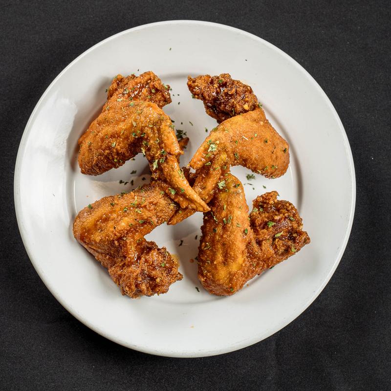 Crispy fried whole chicken wings tossed in our house made honey garlic buffalo sauce.